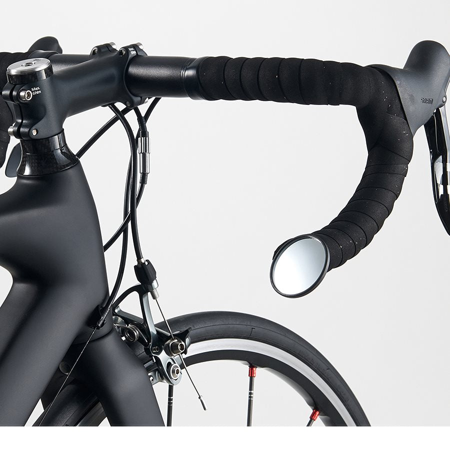 This mirror is easy to install and fits flat and road bar ends. Diameter of 45 mm.